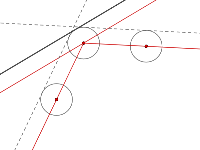 So the incoming angle at $P_1$ is $90^\circ-14\alpha$, and since the incoming trajectory is parallel to one of the walls, we must have $90^\circ-14\alpha=\alpha$, which gives $\alpha=6^\circ\approx 0.10472$ rad.