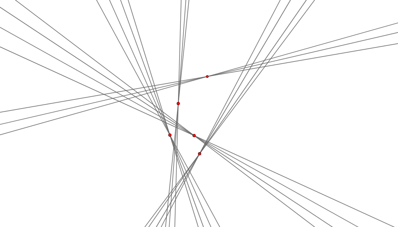 The above construction for 5 points and 18 lines.