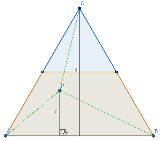 and thus for example $d_1+d_2 \geq d_3$ holds if and only if $T_{ABP}+T_{BCP} \geq T_{CAP}$. Since $T_{ABP}+T_{BCP}+T_{CAP}=T_{ABC}$, the inequality can be rewritten as